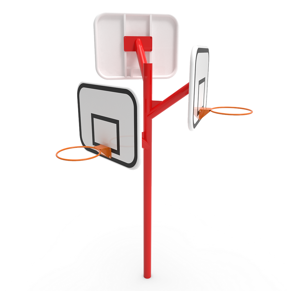 Este modular cuenta con una torre, un techo, dos toboganes simples, una escalera y dos tomas grandes plasticas. Pintura electrostática con protección UV sin plomo. Instalado con pollos de hormigon o flanges con pernos de anclaje.
