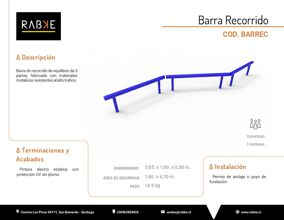 Nombre Detalle Dimensiones 4,4 x 2,1 x 3,5m Área de seguridad 6,4 x 4,1m Peso 200kg Materiales Metales: Tubo acero 3”x2; tubo acero 1¼”x2mm. Plancha diamantada de 2.5mm.